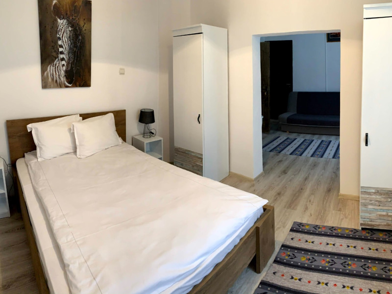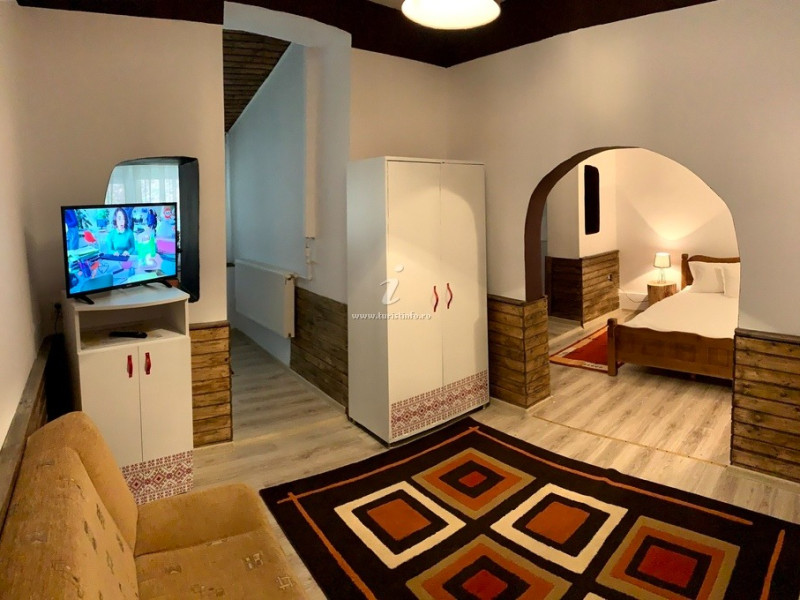 Camera de familie - formata din dormitor si living open-space (fara usa despartitoare), cu pat matrimonial de 140 cm si canapea. Poate acomoda 3 adulti si 1 copil pana in 5 ani.