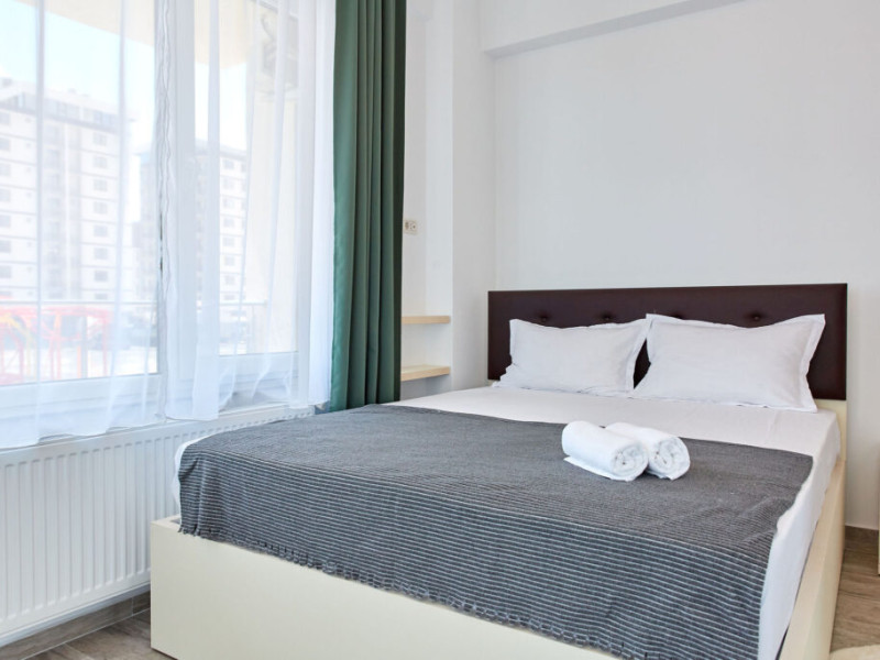 Apartament Smarald 1/ 2 Astoria este compus din living cu canapea extensibila si bucatarie open space (dotata cu frigider, microunde, hota, cuptor, plita), zona de luat masa tip bar, dormitor matrimonia, tv, aer conditionat, baie cu dus, balcon. Suprafata 52 mp. Adresa: Strada Prelungirea D12, nr 8-10, bloc B3, etaj 2- etaj 3.