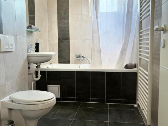 Apartment Silver este situat in cartierul rezidential Avantgarden Bartolomeu din Brasov si este ideal pentru pana la 5 persoane, fiind perfect pentru familii cu copii. Apartamentul dispune de un dormitor cu pat matrimonial, living cu 2 canapele extensibile duble, baie cu cada si bucatarie complet utilata, inclusiv masina de spalat vase. Este dotat cu 2 televizoare cu ecran plat, masina de spalat rufe, sistem de incalzire si racitor de aer. Ofera balcon cu vedere panoramica asupra muntilor, acces la loc de joaca pentru copii.