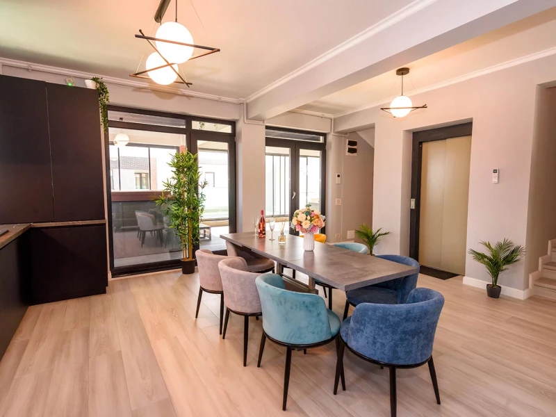 Penthouse-ul este dotat cu internet, Tv, aer conditionat, bai moderne cu dus, fier si masa de calcat, uscator de rufe, uscator de par, pardoseala de parchet, plasa de tantari, masina de spalat rufe, produse de curatenie (burete de vase, detergent de vase, solutii de igienizare, mop, matura, galeata), bucatarii echipate (plita, hota, cuptor, frigider, espressor, sandwich maker, prajitor de paine, fierbator).
