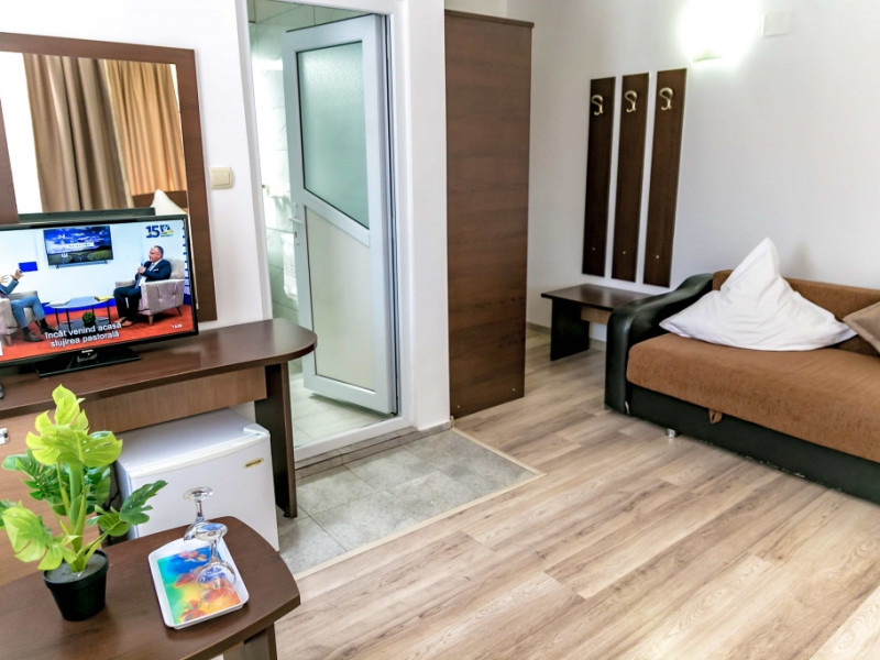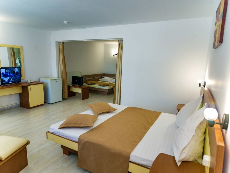 Camerele triple au pat matrimonial + canapea extensibila dubla. Suprafata 25 mp.