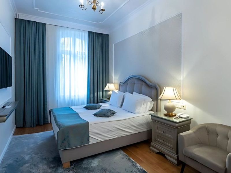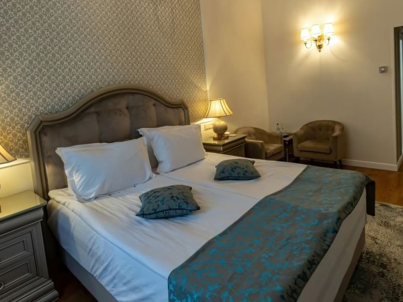 Dubla standard king plus- dotate cu un pat matrimonial si o canapea fixa sau doua fotolii. Suprafata variaza in jurul a 25 mp