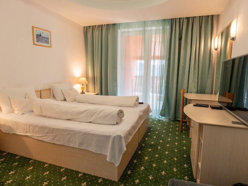 Hotelul dispune de 36 camere duble, 4 camere triple si 4 apartamente