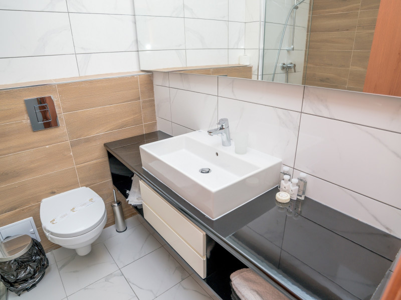 Camerele duble deluxe: renovate complet in 2019 si au in dotare mobilier nou, pat matrimonial, TV, minibar, AC, pardoseala mochetata, tamplarie PVC, plasa antiinsecte, balcon cu masuta cu scaune, baie cu dus spatioasa.