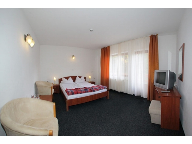 Hotelul dispune de 47 locuri de cazare dupa cum urmeaza: 2 camere duble matrimoniale, 14 duble cu paturi separate, 3 apartamente cu pat matrimonial si camera separata cu loc de luat masa incluzand o canapea cu doua locuri de dormit si o camera tripla.
