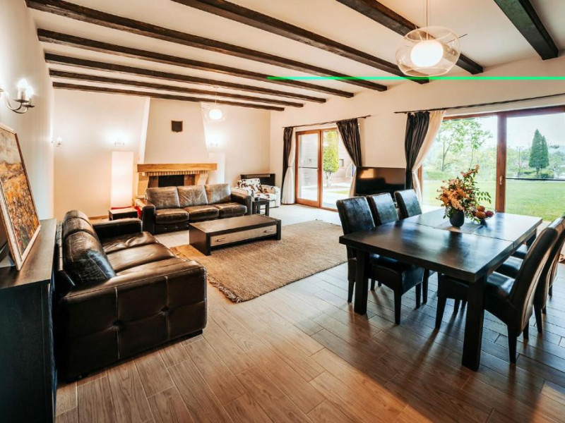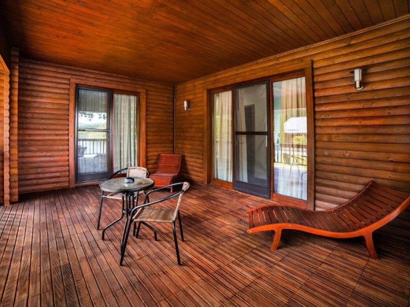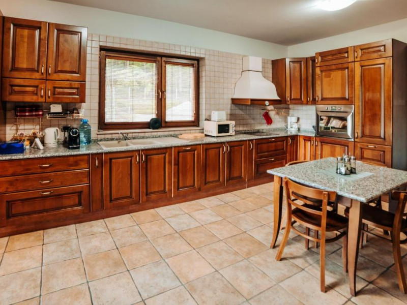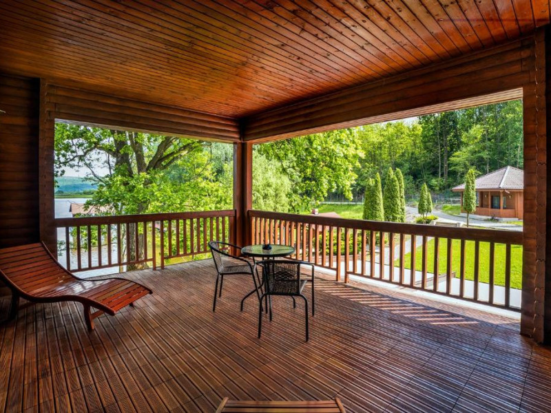 Casa Padure – cu o suprafata de aproximativ 100 mp, are 3 dormitoare fiecare cu pat matrimonial si baie proprie cu dus, sufragerie cu canapea extensibila, balcon cu vedere lac, dar si la gradina, bucatarie utilata, AC, TV, internet, Poate acomoda 6 adulti, suplimentar 2 copii, inchiriere integrala vila.