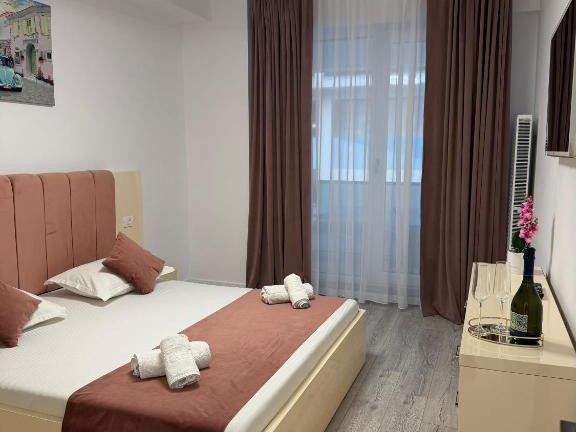 Apartamentele sunt spatioase si bine echipate, avand terasa, vedere la oras, zona de relaxare, televizor cu ecran plat si canale prin satelit, precum si bucatarie complet utilata cu frigider, cuptor, plita, cuptor cu microunde, prajitor de paine, cafetiera si ibric electric.