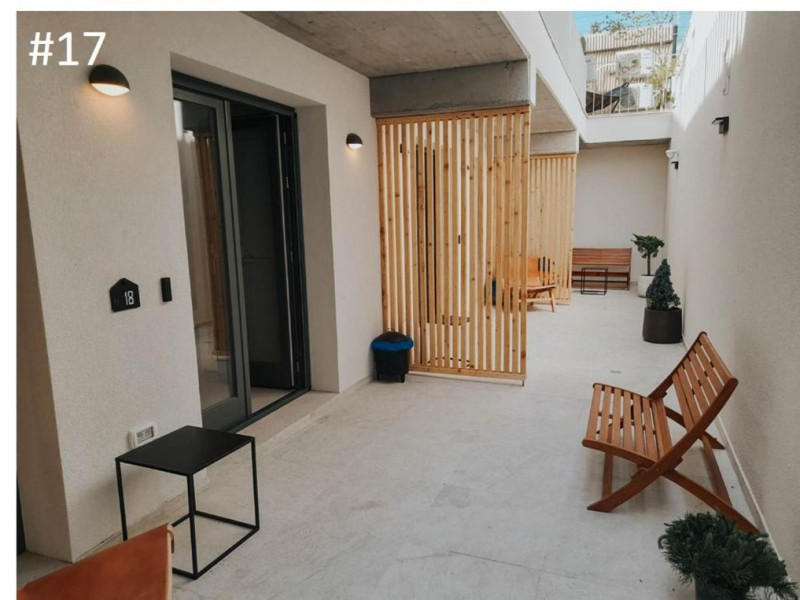 Premium Apartment, cu o suprafata de aproximativ 45 mp, au 2 dormitoare, situate la parter sunt ideale pentru familii mari. Dormitoarele au intrari separate si sunt legate printr-un hol cu dulap mare care duce la baie. Dormitorul mare are pat dublu si canapea extensibila, iar dormitorul mic are 2 paturi single ce pot fi aranjate dupa preferinta ca pat dublu sau separate. Dormitorul mic poate fi transformat usor intr-un living, iar in exterior exista o masa cu scaune pentru a savura un cocktail de vara, pe veranda/balcon.
