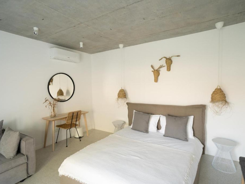 The Pines Boutique Villa ofera 8 spatii de cazare generoase si o piscina exterioara cu umbrele si sezlonguri, la care turistii au acces gratuit: 2 apartamente si 6 camere duble. Dintre acestea, 4 camere sunt la etaj, cu vedere fie spre campuri, fie spre mare, iar 3 au terase suspendate. La parter, apartamentele si camerele duble beneficiaza de curti private.