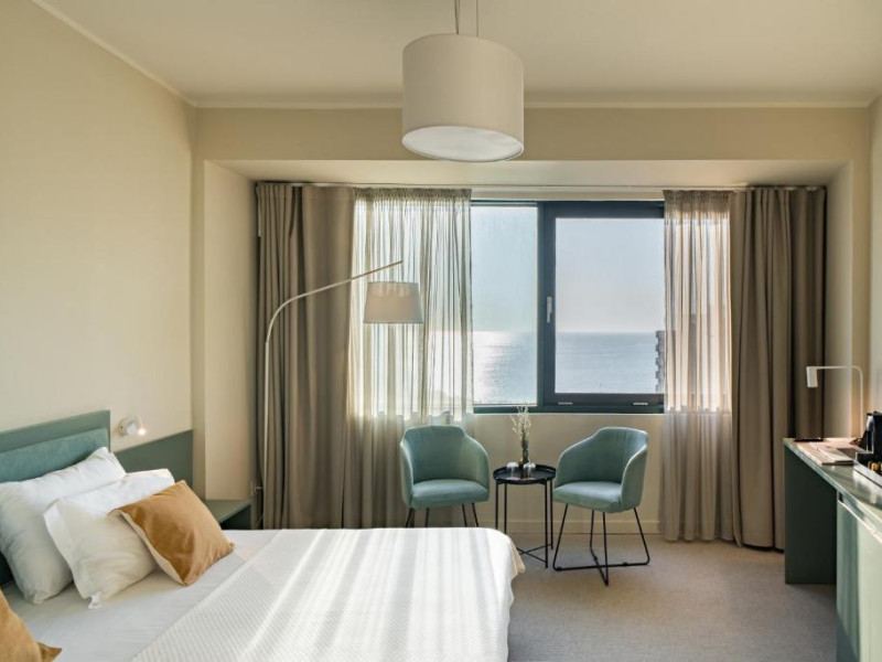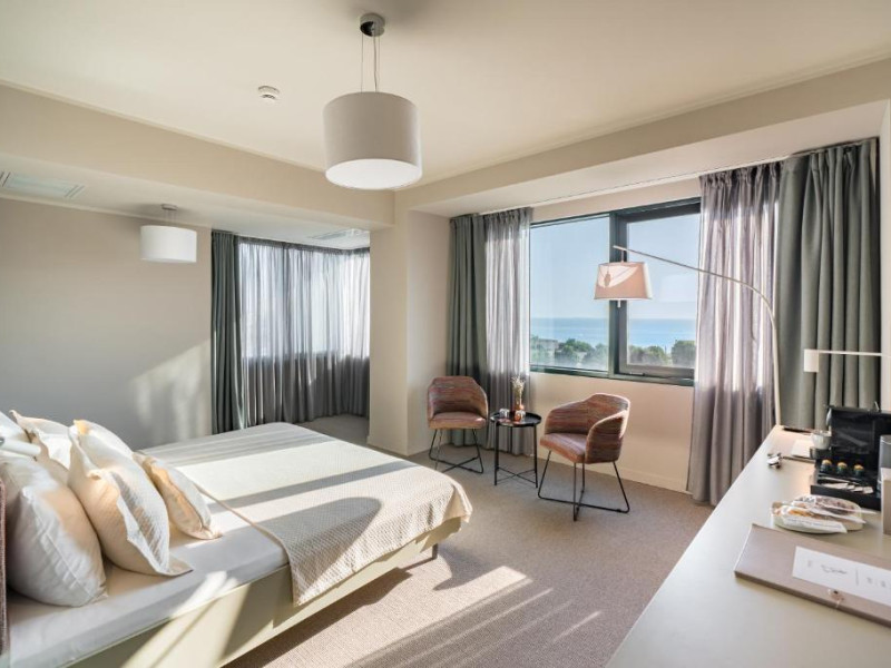 Camera Twin Deluxe are o suprafata de aproximativ 24 mp, ofera vedere la mare si este dotata cu doua paturi de o persoana. Camera dispune de baie proprie cu dus, uscator de par, TV, internet Wi-Fi, aer conditionat, minibar, cafetiera, seif, room service si articole de toaleta premium L’Occitane, fiind ideala atat pentru sejururi leisure, cat si pentru calatorii de business.