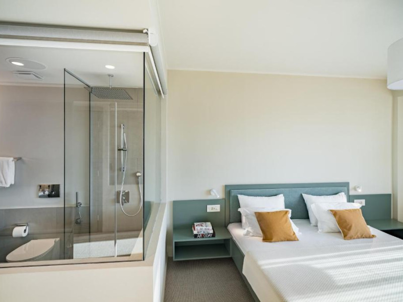Camera Dubla Superior are o suprafata de aproximativ 24 mp, ofera vedere la mare si balcon si este dotata cu pat dublu extra large. Camera dispune de baie proprie cu dus, uscator de par, TV, internet Wi-Fi, aer conditionat, minibar, cafetiera, seif, room service si articole de toaleta premium L’Occitane.