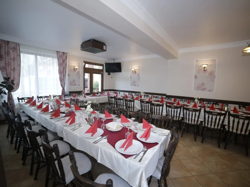 Avand o structura interioara spatioasa si luminoasa si fiind bine intretinute. Restaurantul, cu o capacitate de 60 de locuri, intim si rafinat este situat la parterul pensiunii.